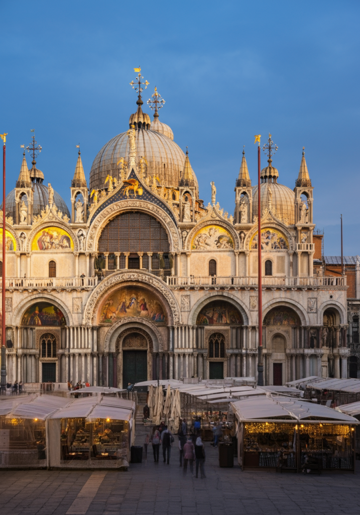 - St. Mark’s Basilica: Byzantine masterpiece with golden mosaics and precious treasures